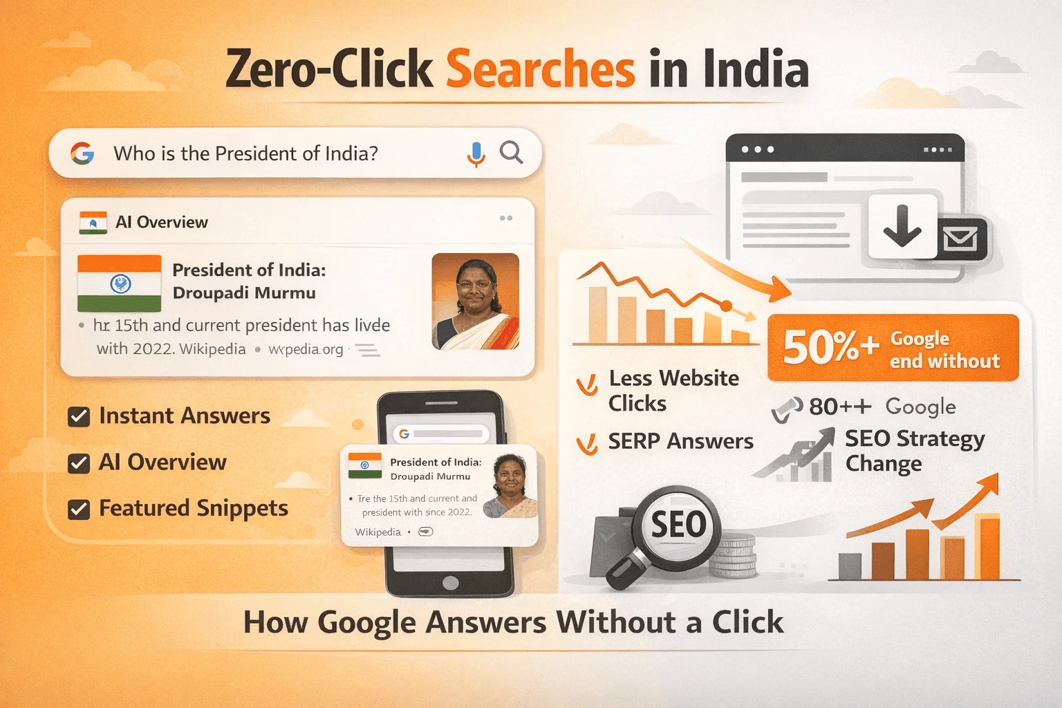The search behavior of users in India shows a dramatic shift towards zero click searches because of their preference for mobile devices and the widespread use of AI technology. The search method enables users to get immediate results from Google search results because it does not need any website visits, which provides users with quick results while disrupting established online traffic patterns.